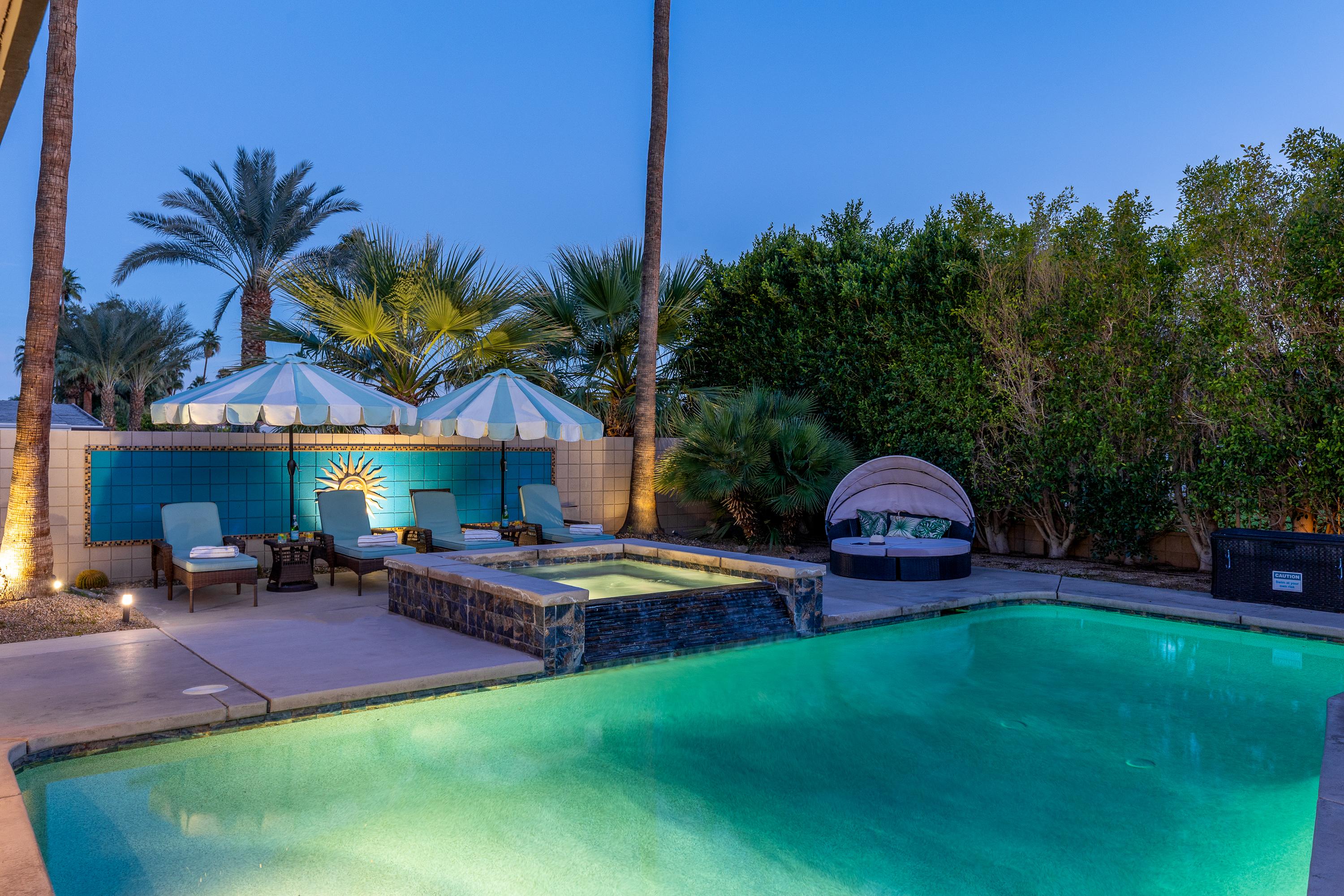 Welcome to your Palm Springs dream getaway — a spectacular mid-century modern jewel set on the Tahquitz Creek Golf Resort. Featured on the 2024 Modernism Week Tour, this newly remodeled four-bedroom, three-bath estate combines timeless architecture with luxury amenities and a resort-style backyard. With dual primary suites on opposite ends of the home, an expansive saltwater pool and spa, and unobstructed mountain views, this property is designed for families, couples, and groups seeking the ultimate desert retreat. Beds: K,K,K,Q