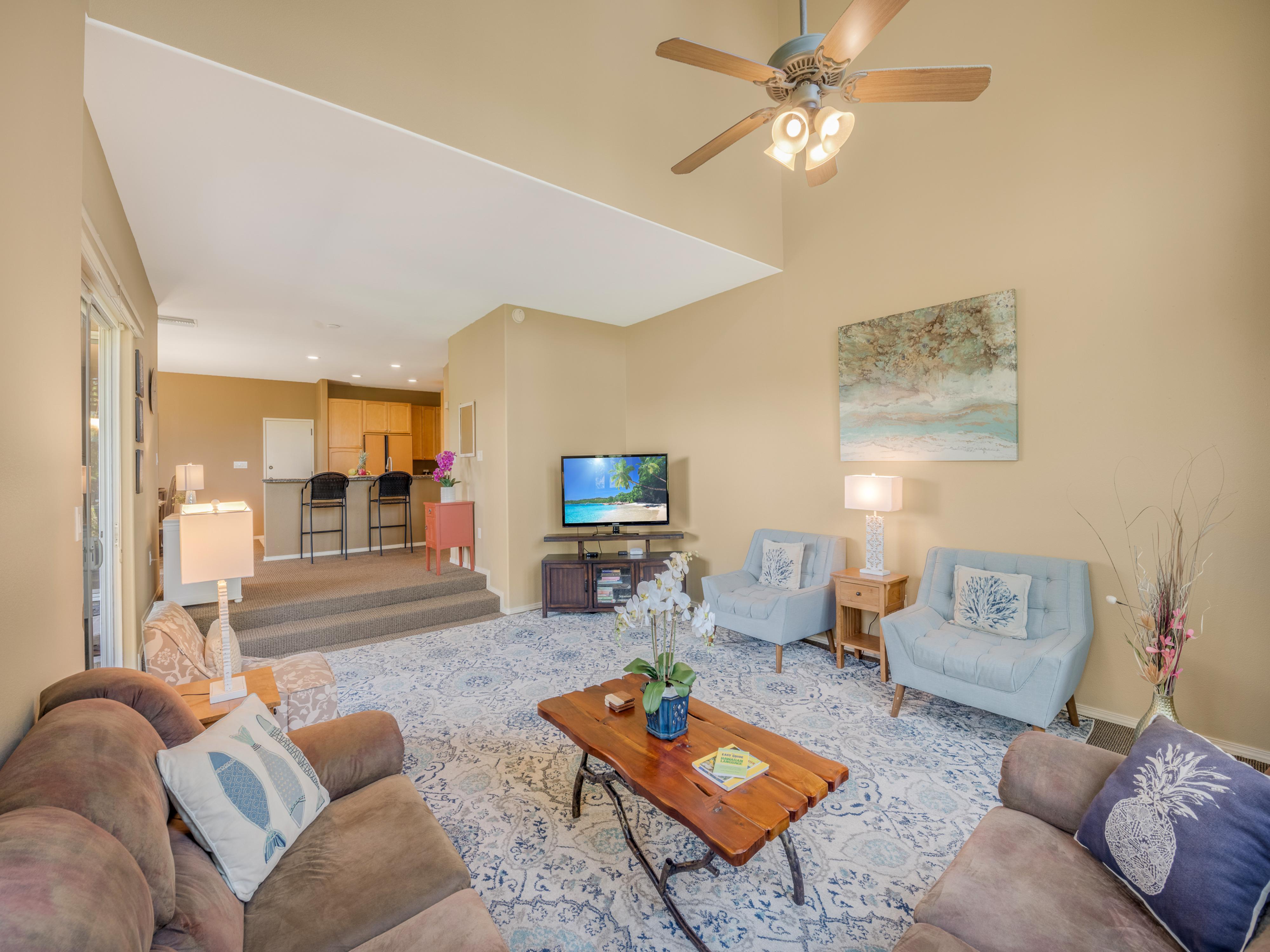 Each of the three bedrooms in this Waikoloa vacation rental is furnished with a queen bed and private flat screen TV. Guests can unwind in the comforts of their own sleeping quarters and tune in to whatever programing piques their interest.