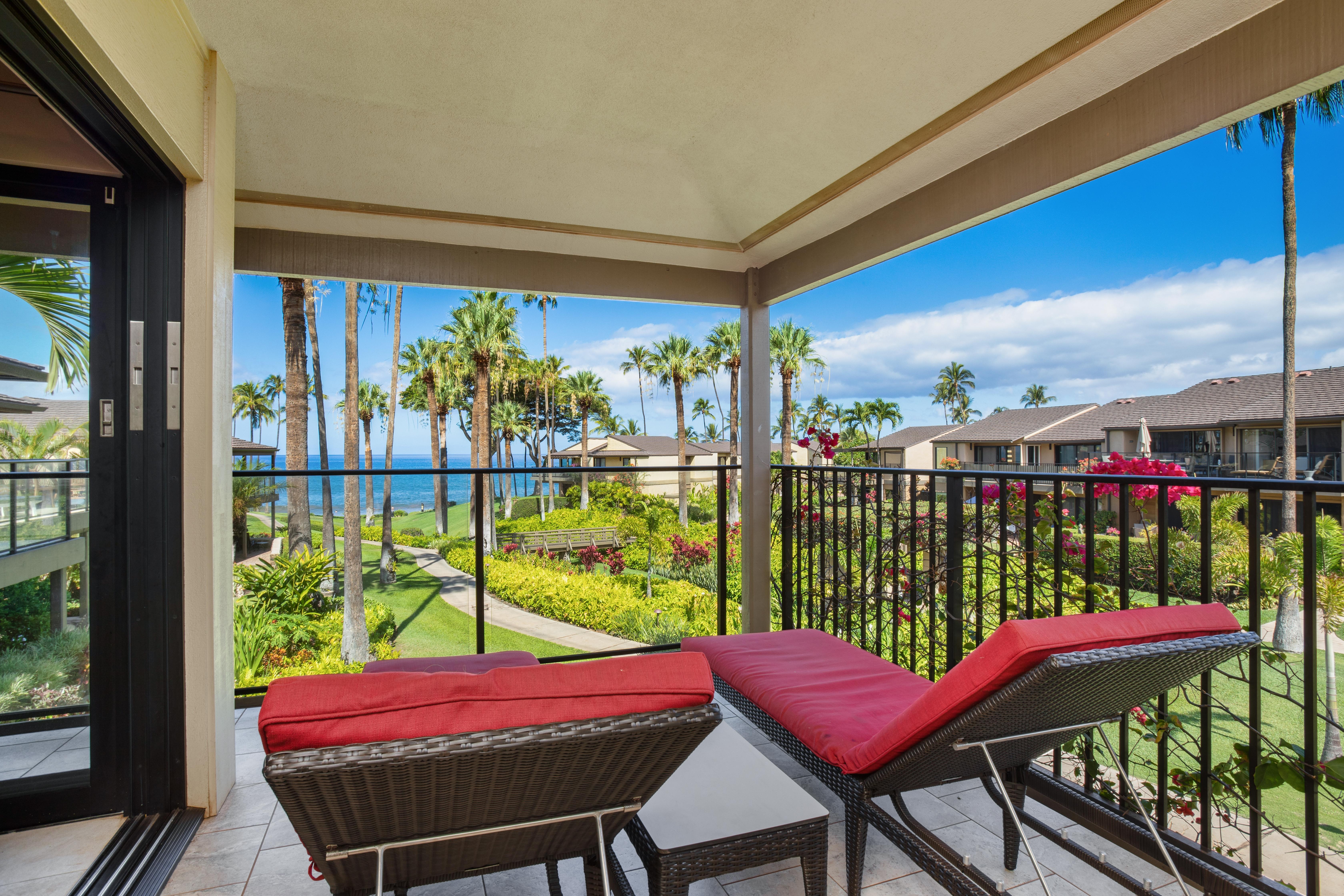 Watch the sunset over the ocean on your private lanai and head in to your renovated kitchen to prepare an island-inspired dinner. Serve happy hour snacks and drinks on the kitchen island or dine more formally at the glass dining room table with partial views of the ocean.