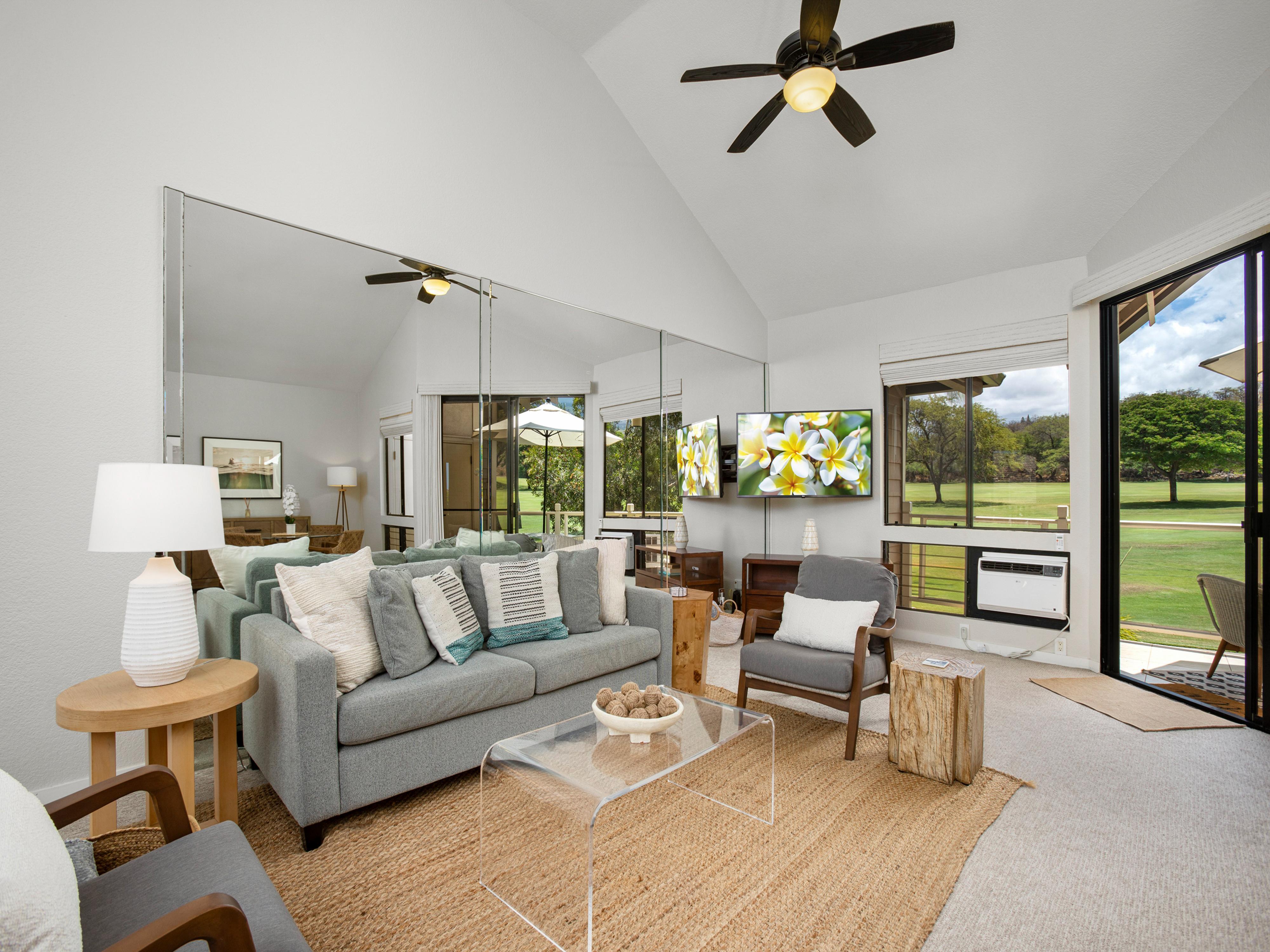 Welcome to the serene and luxurious Wailea Grand Champions 104, your perfect retreat in the heart of Wailea. This stunning 1-bedroom condo offers a blend of modern elegance and comfort, ideal for a relaxing getaway. The open-plan living area features a plush king-sized bed in the bedroom, a cozy sofa bed in the living room, and can comfortably sleep up to four guests.