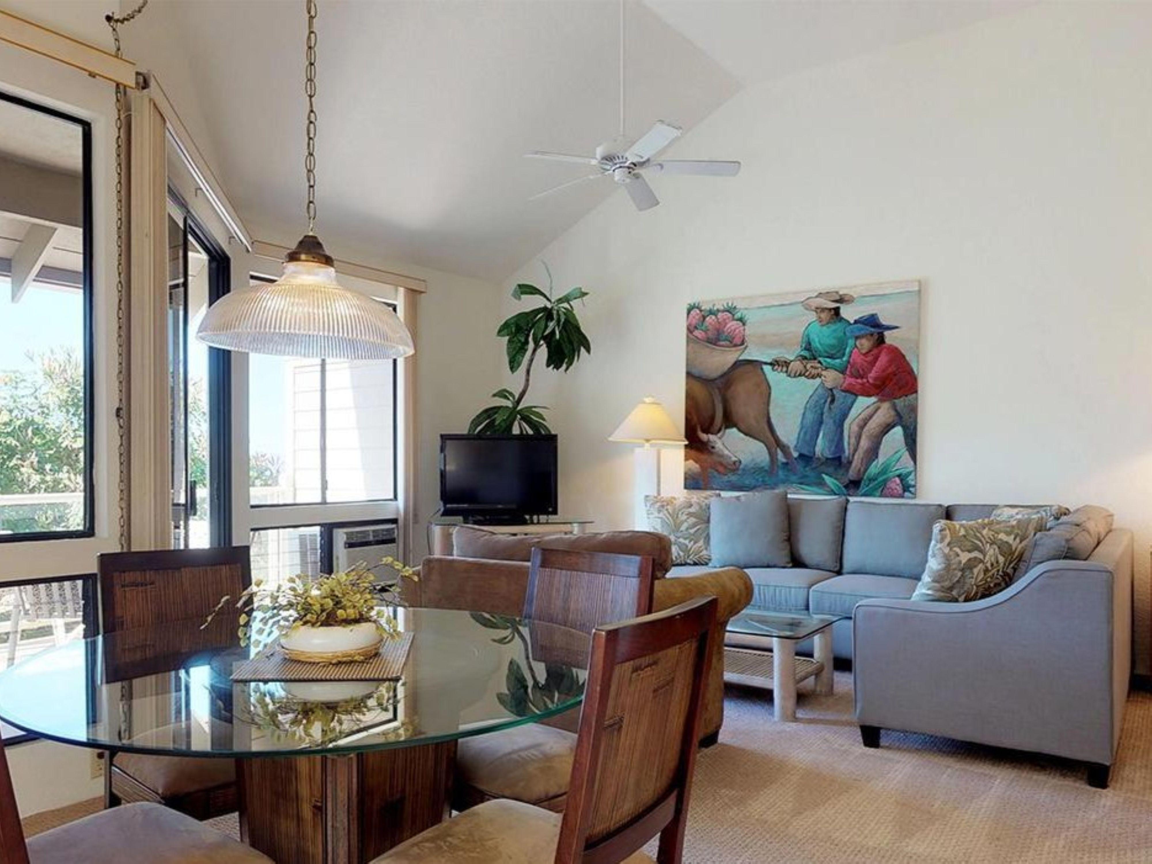 Welcome to the serene and luxurious Wailea Grand Champions 116, your perfect retreat in the heart of Maui. This elegant 1-bedroom, 2-bathroom condo offers a blend of comfort and sophistication, ideal for a memorable getaway. The spacious layout features a king-sized bed in the master bedroom, ensuring a restful night's sleep, while the living room comfortably accommodates two more guests on a plush sofa bed.