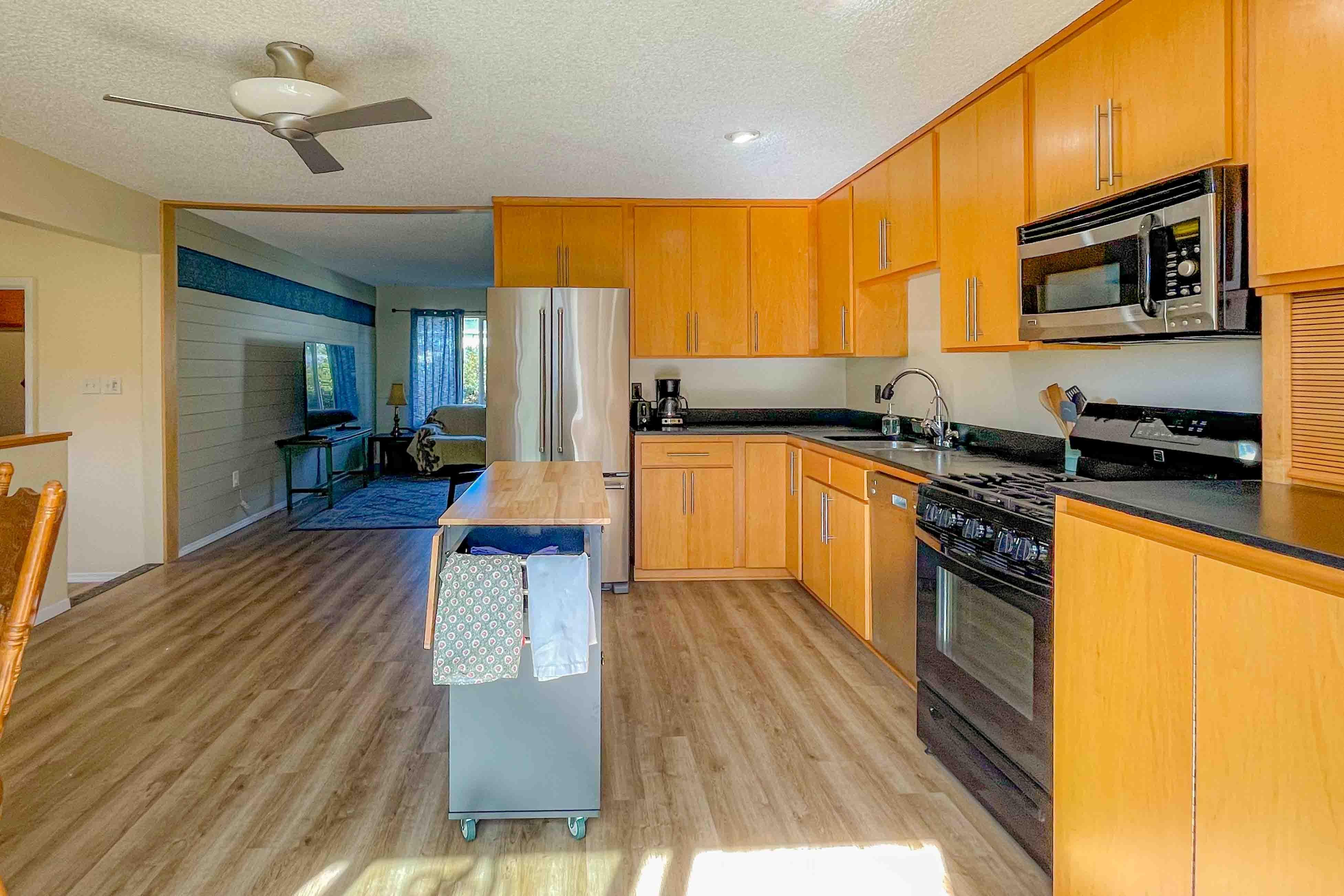 Step inside to discover an open layout and harmonious decor in this well-maintained home, equipped with all the amenities you need for a comfortable stay, including a washer/dryer, internet, smart TV to access your favorite streaming services, and a kitchen with modern appliances. Unwind on the deck surrounded by the lush greenery of the private yard or relax in the hot tub while listening to the soothing rumble of waves and watching the sparkling stars at night.